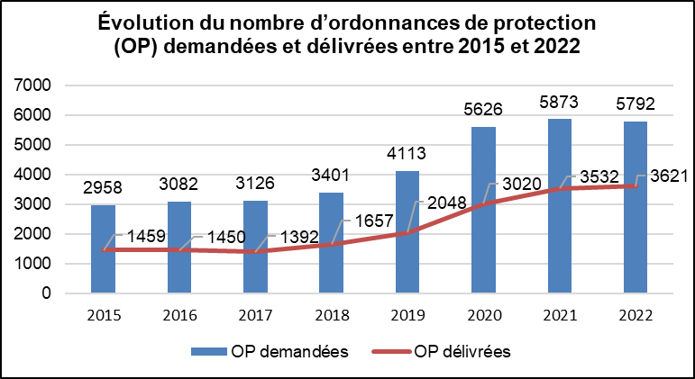 Mais, en pratique, quoique l’ordonnance de protection soit indéniablement un outil puissant et utile, elle n’a toujours par rencontré le succès escompté. Ainsi, selon le rapport de la sénatrice D. VÉRIEN (rapp. Sénat n° 557, 30 avril 2024), en 2022 321.000 femmes se sont déclarées victimes de violences conjugales mais seulement 5.792 demandes d’ordonnances de protection ont été formulées, dont 3.621 ont été acceptées.